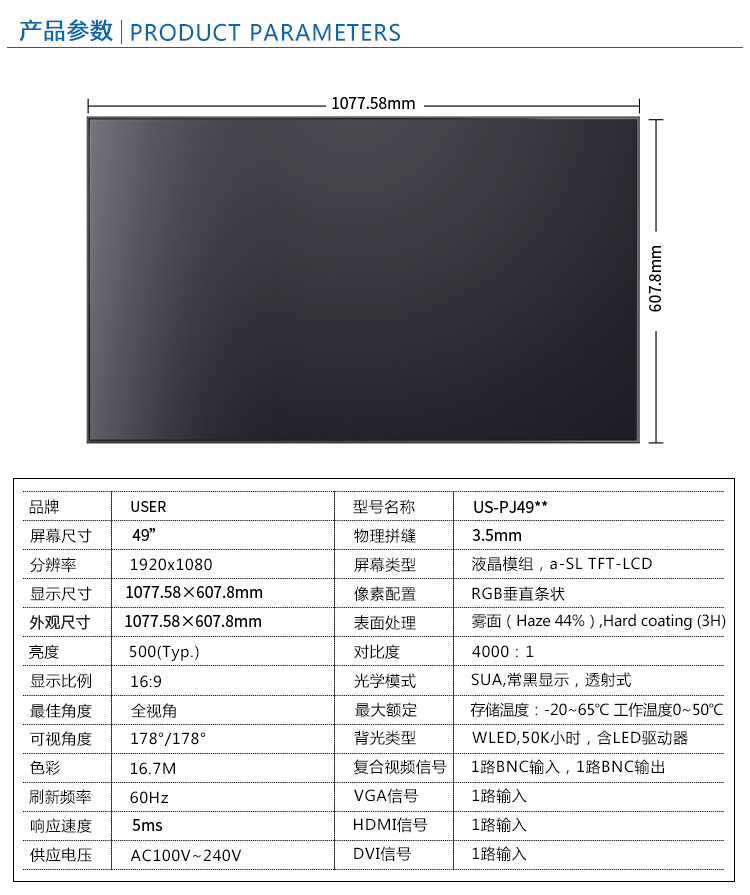 優色49寸3.5mm超窄邊液晶拼接屏類別:專業液晶拼接屏
